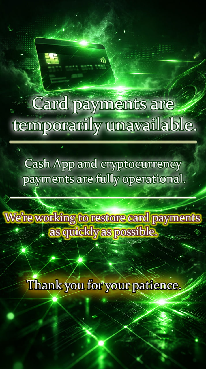 We accept payments via PayPal, cryptocurrency, and Cash App, offering secure and instant transactions anytime. Shop with confidence, knowing your payments are protected, whether you choose PayPal, digital currency, or Cash App.